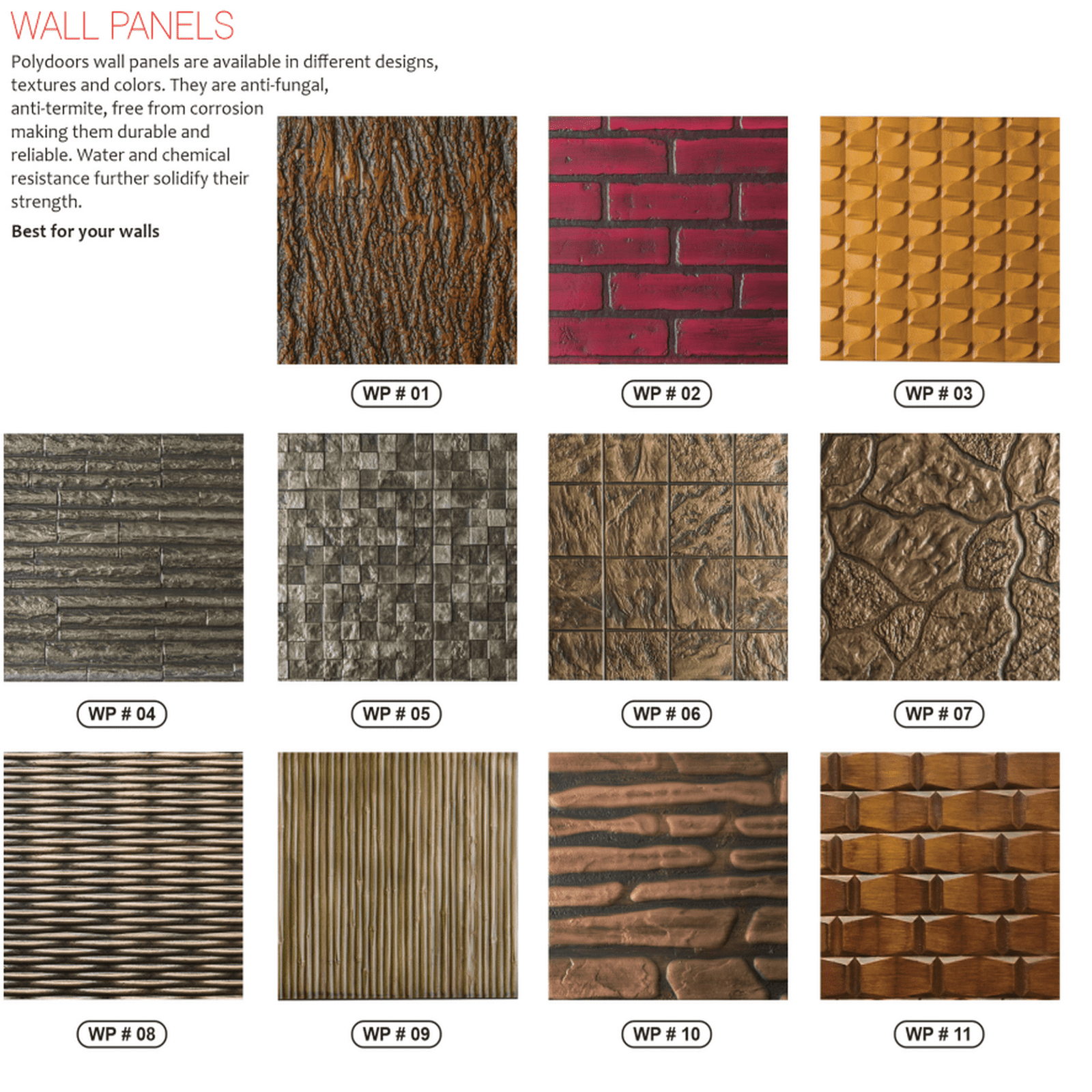 Polydoors wall panels are available in